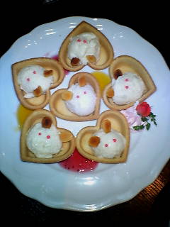 手前のお皿の方は、ラスクが絵本を開いた形に盛り付けられているの 分かりづらい か な