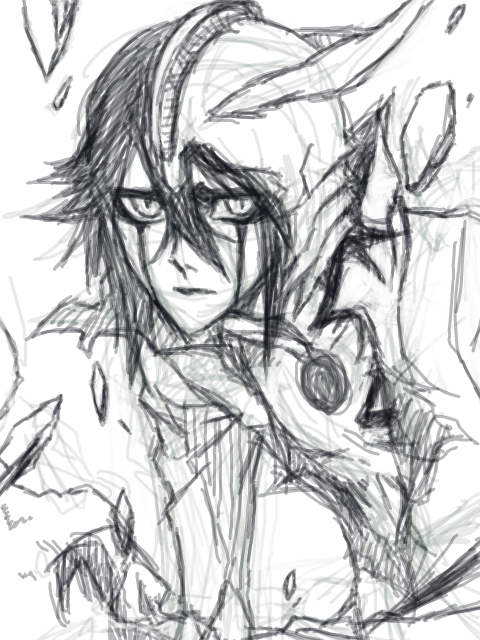そんでB.L.E.A.C.H.破.面.篇を読了した時に「そういえば冬姉と私の数少ない共通ジャンル鰤だったじゃん!冬姉ウル好きだったよね~描こ描こ!」と勢いでガサガサッと落書きしたものがこれ↓なわけですが、クソ多忙すぎて着色が1ヵ月半後の今になったという…ペンタブ握ったの自体1ヵ月半ぶりという…ほんとすみませn