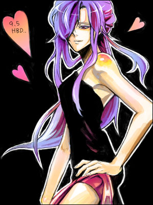 黒と紫、ピンクと黄色とその他色調補正のためにチョコチョコした色だけ使ってどれだけ描けるか挑戦した結果、リアル画の風上にも置けないようなロ.ザ.ン.宇.治.原さんが現れた!恭弥が一番喜ぶのは二次元じゃなくてこっちかなぁと思って一生懸命描いた結果がこれだよ!
