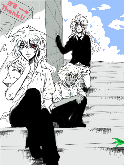 えーとこないだ描いたチームサティスファクション絵の4人のうちの白髪の彼は、リーダーの「鬼柳京介」といいます。享年17~19です。